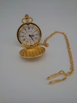 Gold plated pocket watch and chain supplied in a blue silk lined gift box. Free engraving is included in the price. Ideal gift for Best man, Usher & Groom.