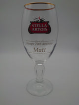 Stella Artois chalice pint glass supplied in a blue skillet box. Personalisation is included in the price.