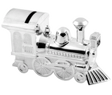 Bambino silver plated train money box.