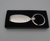 Engravable are is approximately 45 x 20mm. Full length of keychain is 70mm and split ring is 34mm in diameter.
